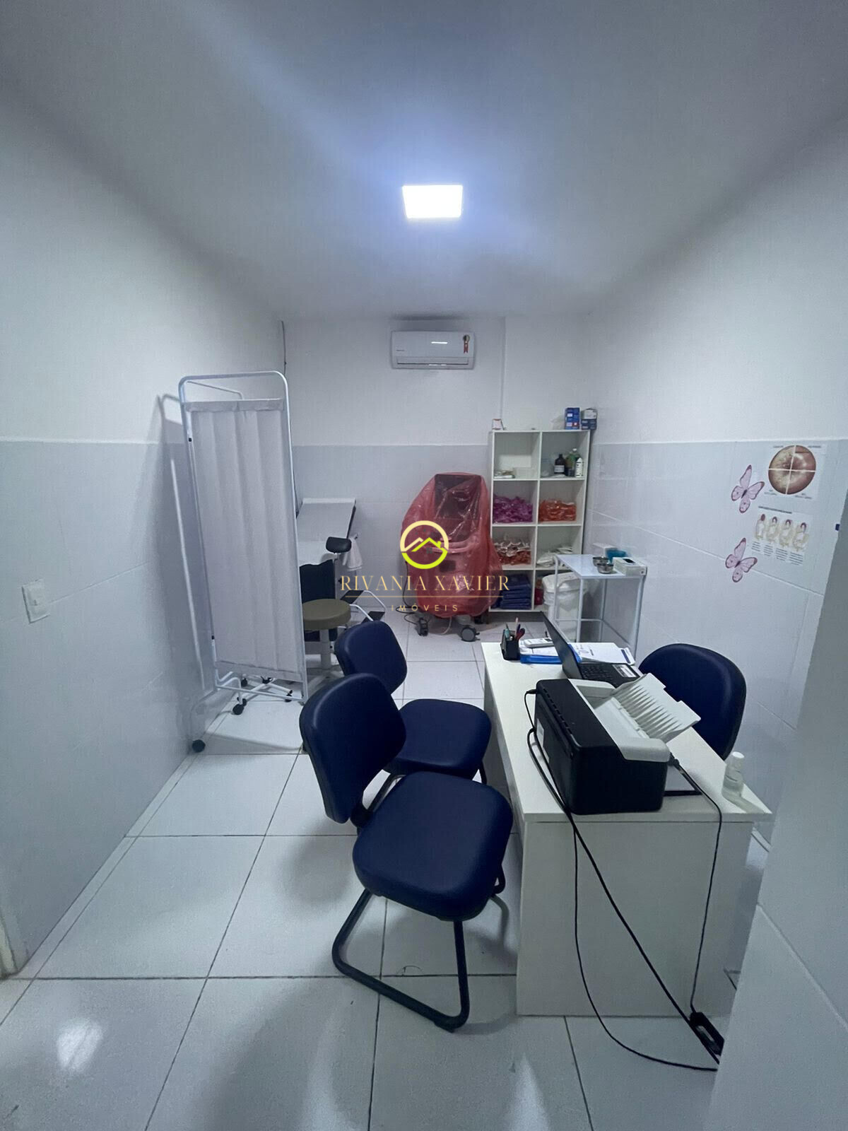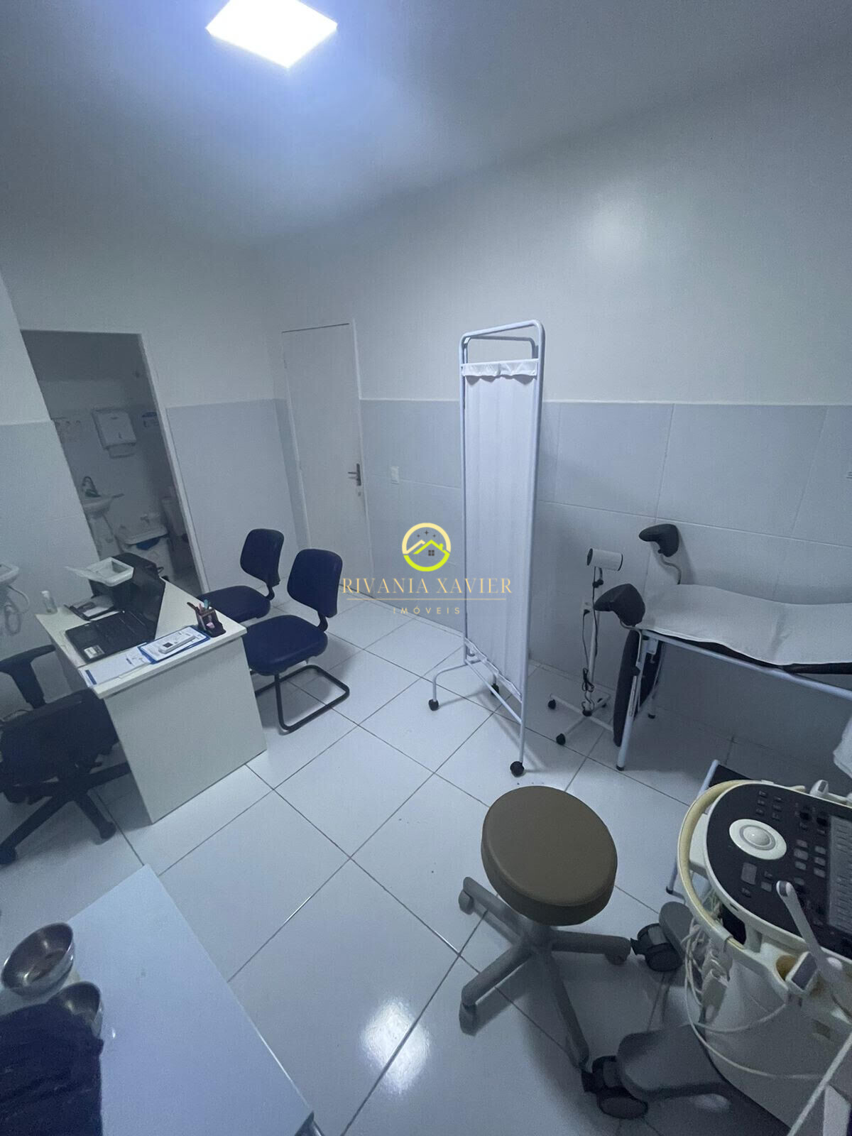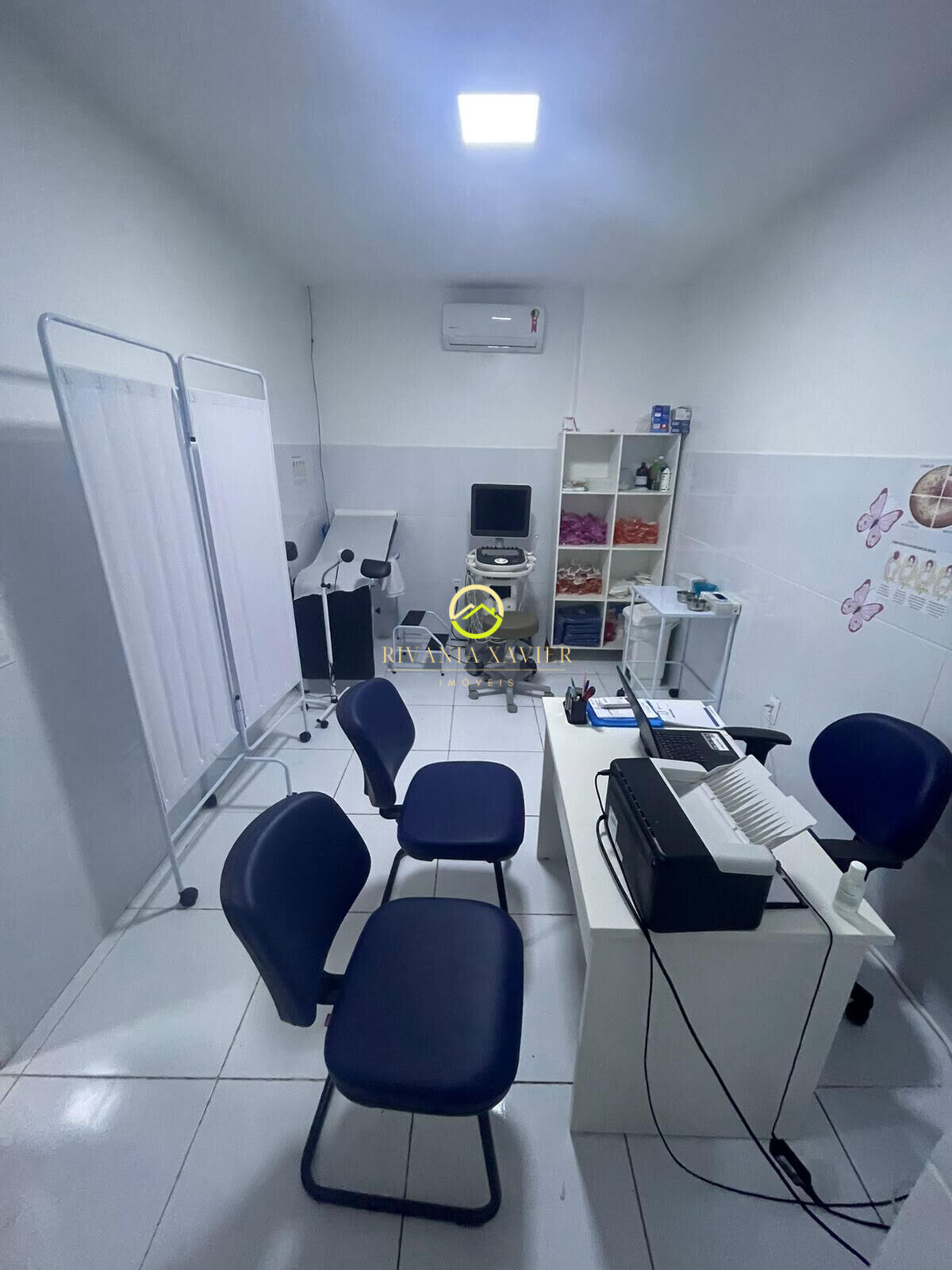 Sala comercial completa toda mobilada para ginecologia, possuindo ar-condicionado, lavatório e aparelhos ginecológicos.